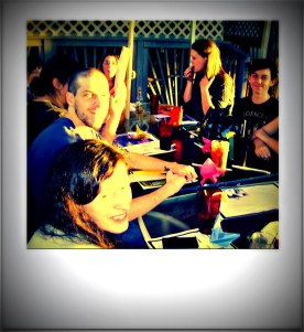 I headed over to the first row by the entrance—a table full of young academics. I gathered this was the cool table. “Photo Op! Something for the blog. How’s everybody doing? Ever done NaNo before?”