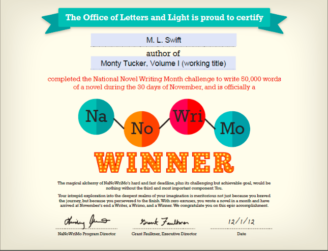 NaNoWriMo Certificate